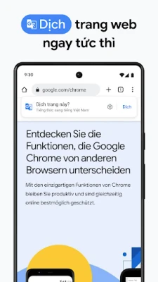 Khám phá một thế giới kỹ thuật số không giới hạn với Chrome, trình duyệt được thiết kế để mang lại trải nghiệm trực tuyến thông minh và liền mạch. Tận dụng sức mạnh vượt trội của Google ngay trong tầm tay bạn. Tìm kiếm mọi thông tin, nhận câu trả lời nhanh chóng bằng giọng nói hoặc văn bản, và thậm chí sử dụng Google Ống Kính để khám phá thế giới xung quanh chỉ qua camera của bạn. Từ việc tra cứu định nghĩa tức thì đến việc hiểu rõ mọi thứ bạn nhìn thấy, Chrome biến thiết bị của bạn thành một cánh cửa tri thức. Đặc biệt, hãy phá vỡ mọi rào cản ngôn ngữ trên web với Google Dịch, dễ dàng chuyển đổi nội dung của hơn 130 ngôn ngữ chỉ với một cú chạm, mở ra những chân trời thông tin mới.