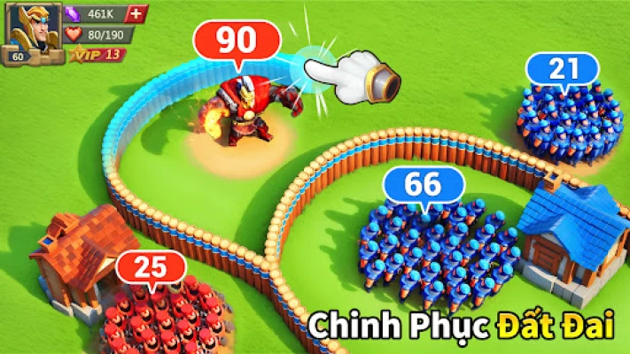Nắm quyền điều hành vương quốc của bạn với khả năng nâng cấp công trình, đẩy mạnh nghiên cứu và huấn luyện vô số binh lính để mở khóa tiềm năng phát triển tối đa. Hệ thống chiến đấu sâu sắc cho phép bạn tùy chỉnh đội hình với 4 loại lính và 6 đội hình chiến thuật, tận dụng các Tướng lĩnh mạnh mẽ và hệ thống khắc chế để giành lợi thế. Đặc biệt, tham gia Viễn Chinh Bang Hội độc đáo, nơi các Bang hội cạnh tranh khốc liệt để mở rộng lãnh thổ mà không lo mất quân, cho phép bạn thỏa sức phô diễn tài năng chiến lược. Khám phá các Cổ Vật cổ đại trong Sảnh Cổ Vật, cường hóa chúng để khai phá sức mạnh tiềm ẩn, nâng cao năng lực cho đế chế của bạn.