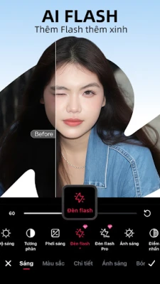 Meitu đánh tan nỗi lo ảnh thiếu sáng với công nghệ AI Flash đột phá, tự động điều chỉnh ánh sáng thông minh mà không cần đèn flash truyền thống, đảm bảo mọi chi tiết luôn sắc nét, rạng rỡ. Hơn thế nữa, tính năng Làm đẹp AI tự nhiên của Meitu sẽ tự động nhận diện các đặc điểm khuôn mặt, nhẹ nhàng cân bằng tông màu da, làm sáng đôi mắt, thon gọn đường nét, xóa mờ nếp nhăn và chỉnh sửa răng một cách tinh tế, mang lại vẻ đẹp hài hòa mà không cần chạm tay. Đối với những ai yêu thích sự sáng tạo, Meitu cung cấp bộ công cụ chỉnh sửa ảnh toàn diện: từ định hình khuôn mặt theo ý muốn, điều chỉnh màu sắc chuẩn xác, đến kho bộ lọc phong phú với hơn 100 chủ đề, hay công cụ xóa vật thể, người thừa, ghép khung, thêm chữ và vẽ tay, giúp bạn tự do thể hiện phong cách cá nhân.
